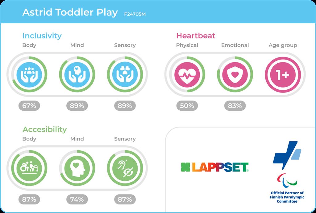 Astrid mängumaja kutsub väikelapsed (alates 1. eluaastast) mängulisse ruumi, kus kujutlusvõime saab juhtrolli. Väike rõdu ja interaktiivsed paneelid soodustavad rollimängu, jutustamist ja sotsiaalset suhtlust, toetades emotsionaalset ja kognitiivset arengut ühiste kogemuste kaudu. Kinnine struktuur pakub hubast turvatunnet, jäädes samas avatuks ja ligipääsetavaks kõikidelt külgedelt. Vastupidavatest materjalidest valmistatud Astrid on loodud aktiivseks igapäevaseks kasutamiseks avalikes parkides, algkoolides või lasteaedade mänguväljakutel.