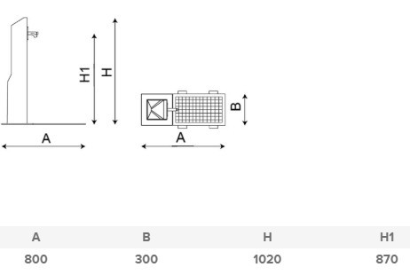 GES dizaina dzeramā ūdens stacija izgatavota no videi draudzīga COMVEG (dārzeņu kompozītmateriāla) ar krāsota kortēna tērauda efektu, kas samazina ietekmi uz vidi, ir izturīga pret laikapstākļiem un ūdeni atgrūdoša. Komplektā ietilpst kaļamā čuguna režģis, niķelēts krāns un balsts. Sagatavota stiprināšanai ar četrām Ø10 skrūvēm atkarībā no virsmas un projekta.