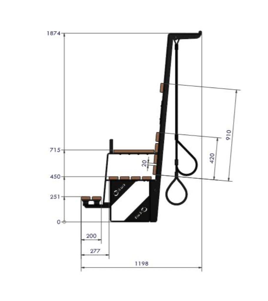 Kompakta aktivitāšu stacija ar solu, kas nodrošina kustību un atpūtas iespējas vienam vai vairākiem bērniem. Piemērota rotaļu laukumiem, skolām un publiskām ārtelpām.