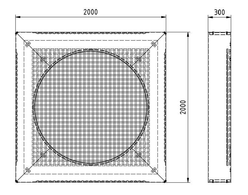 Lēkāšanas ierīce 2m x 2m apaļš (D=1,43m siets ar pretvandālisma pārklājumu)