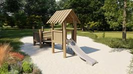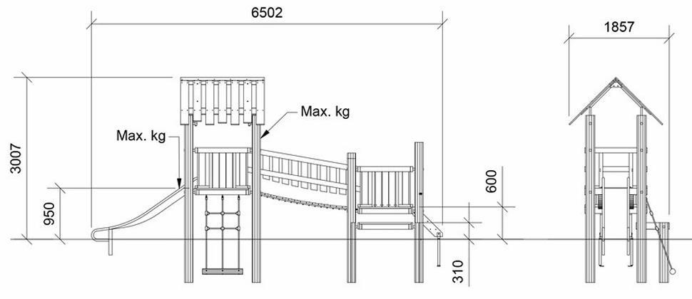 Šī torņu sistēma sastāv no diviem kvadrātveida rotaļu torņiem, kas savienoti ar piekares tiltiņu. Torņi ir dažādos augstumos, ļaujot dažāda vecuma bērniem rotaļāties kopā un padarot tiltiņu īpaši aizraujošu. Torņi apvieno rotaļas ar motorikas un spēka attīstīšanu. Trīs kāpšanas iespējas – vertikālas kāpnes, slīps tīkla kāpnes un plata platforma – nodrošina piemērotus izaicinājumus šī vecuma bērniem. Augstākā torņa divslīpju jumts sniedz vieglu aizsardzību no saules un lietus, radot torņa vai rotaļu mājiņas sajūtu. Pacelti virs zemes, torņi ļauj bērniem izbaudīt skatu, pirms doties lejup pa slidkalniņu.