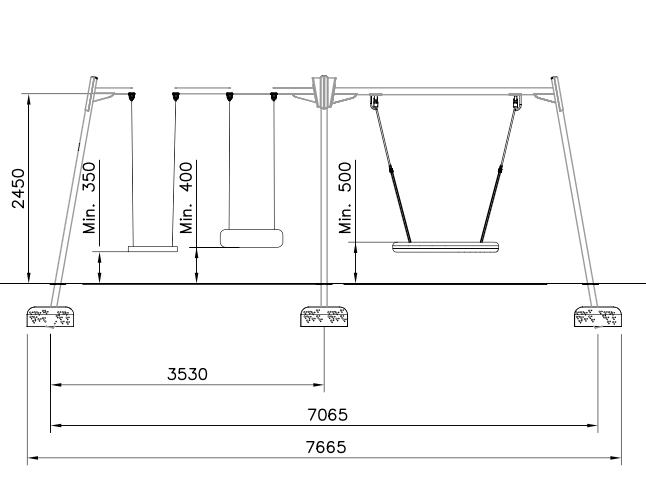 Šūpoļu rāmis, paredzēts grozam un 2 sēdeklīšiem