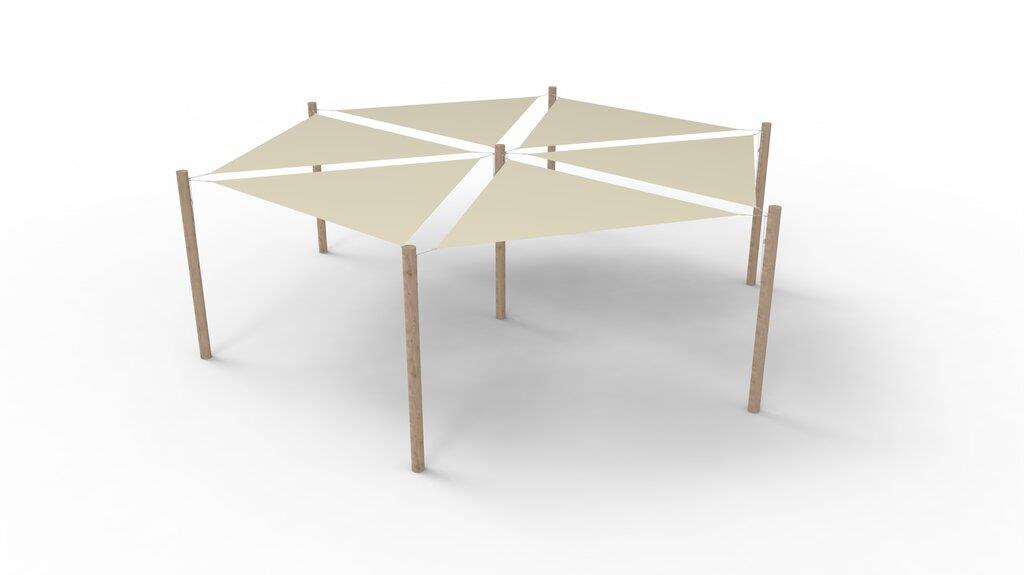 Nojumes sistēma 3x3x3 m Poliestera saulessargi (6 gab.) ar 7 Robīnijas balstiem