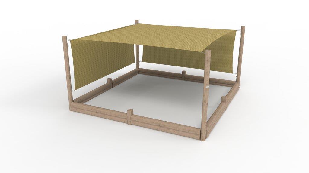 Overdækket sandkasse 4,2x4,2m, med 2 sidesejl