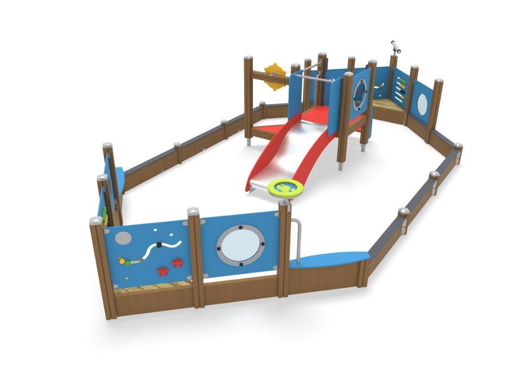 Smilšu kaste "Laiva" ar slidkalniņu un spēļu paneļiem